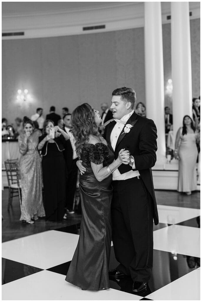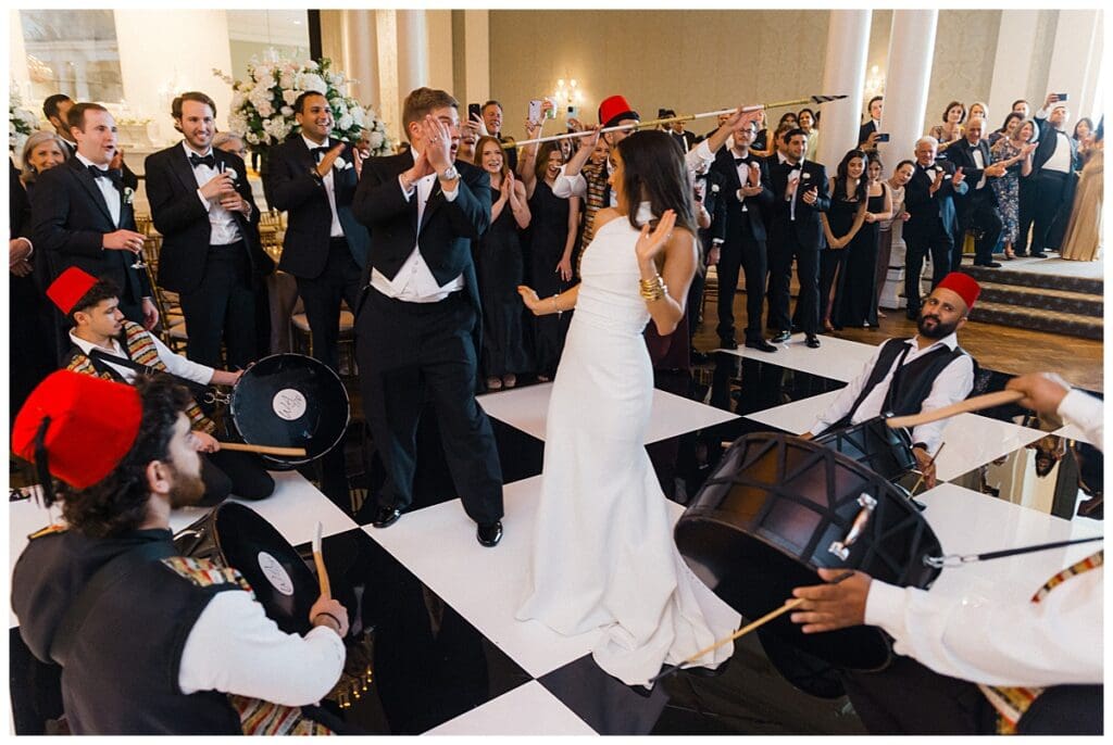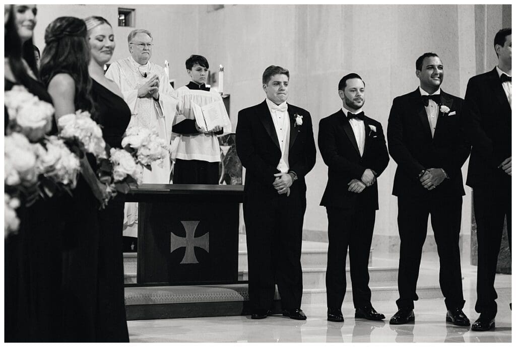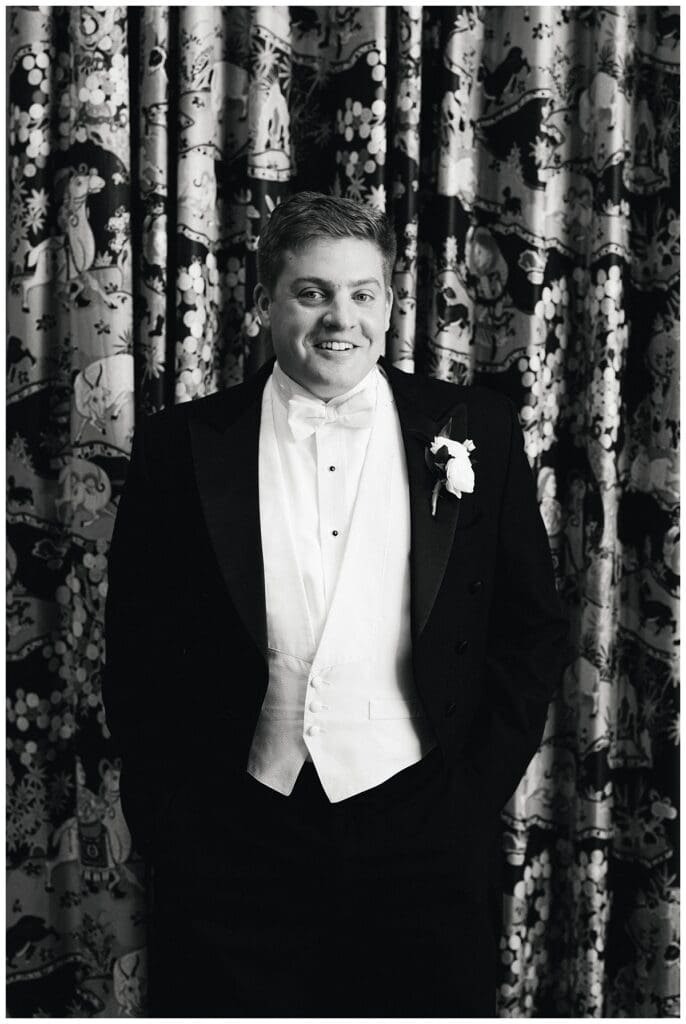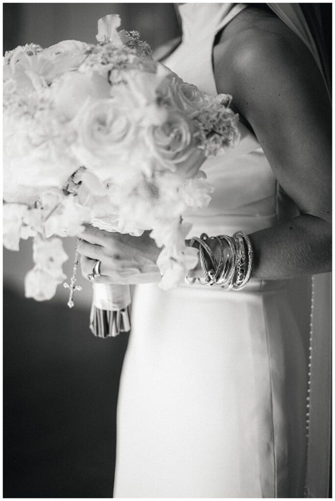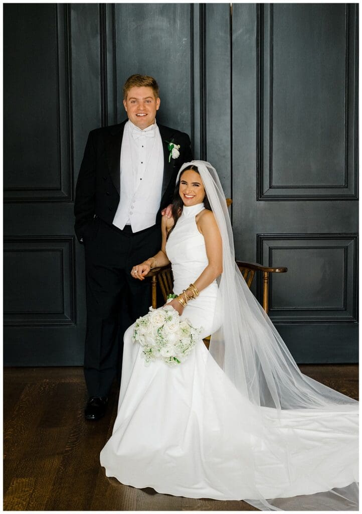 Our sweet bride wore a Robert Bullock gown, all heirloom jewelry, and used Eddie’s grandma’s rosary as her “something blue” on her bouquet, while her handsome groom wore a white tie with tails to complete his wedding day look.